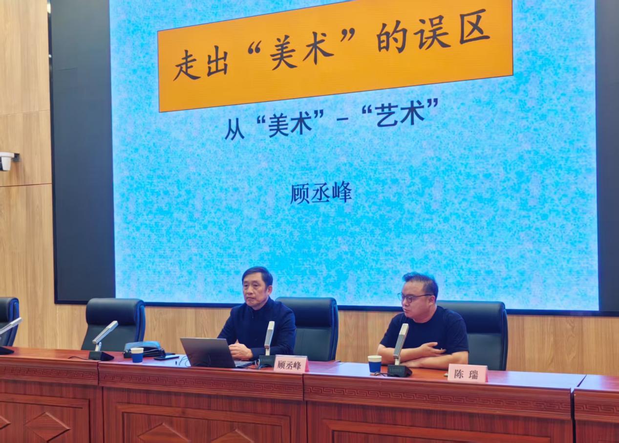 10月23日下午,南京艺术学院美术与书法学院教授、博士生导师、著名当代美术批评家顾丞峰做客我校系列讲座,在图书馆一楼报告厅带来题为"走出'美术'的误区"的专题分享。本次讲座由策展人、艺评人、南京艺术学院当代美术研究所所长陈瑞主持,吸引了我校众多师生到场听讲。
