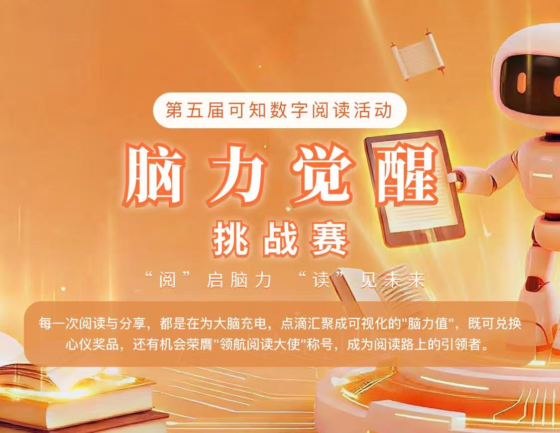 阅读不只是“翻书”,这次,它还是你解锁“脑力值”的钥匙。2026年4月1日0时至4月30日24时,第五届可知数字阅读活动——“脑力觉醒”挑战赛,等你来战!